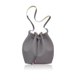 Trendová sťahovacia kabelka je vyrobená zo sivej imitácie kože vzhľadu semišu. Žltá podšívka a jedna strana remienka žltej farby vytvárajú nečakaný kontrast, pričom kovové súčasti vo farbe ružového zlata jej dodávajú luxusný nádych. Uzatvára sa sťahovacou šnúrkou. Vo vnútri má odpojiteľné puzdro na cennosti.